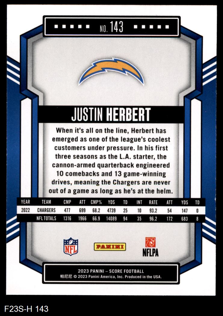 2023 Panini Score (2,322 available)2023 Score Chargers (103 available)