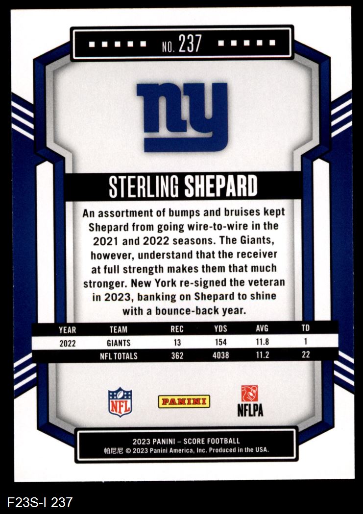 2023 Panini Score (2,357 available)2023 Score Giants-FB (64 available)