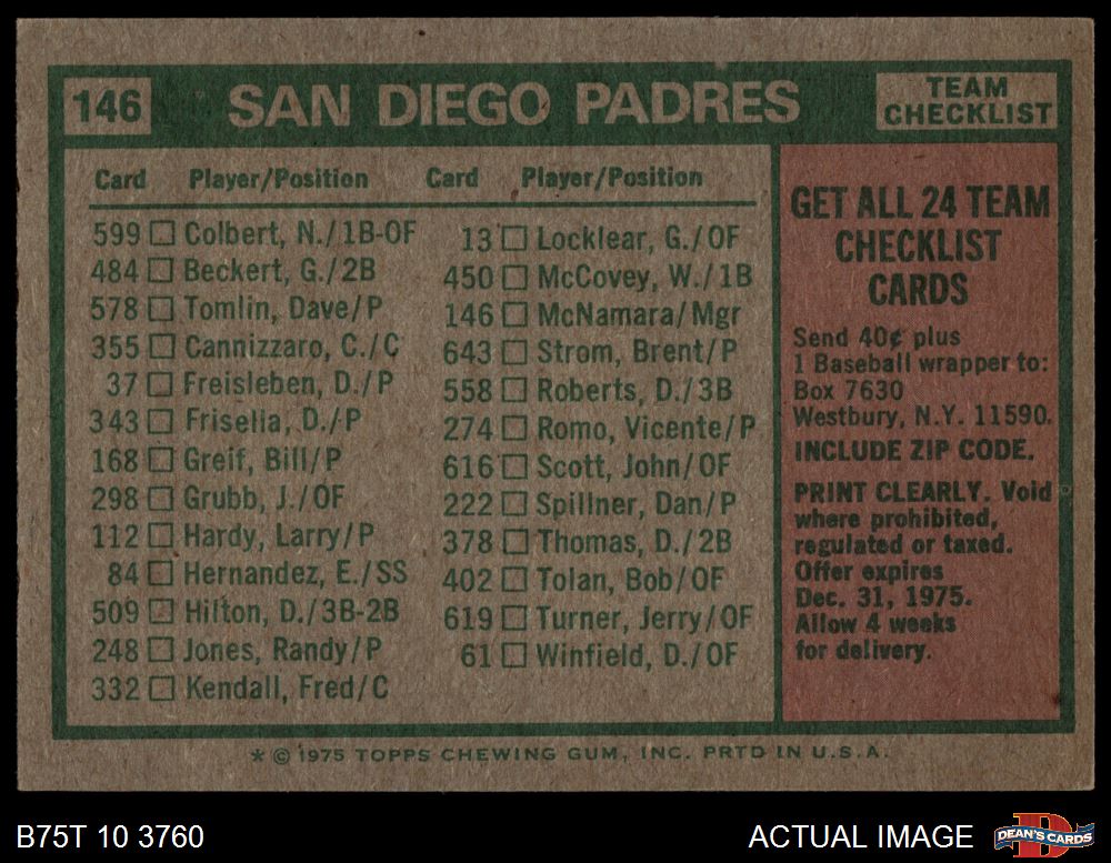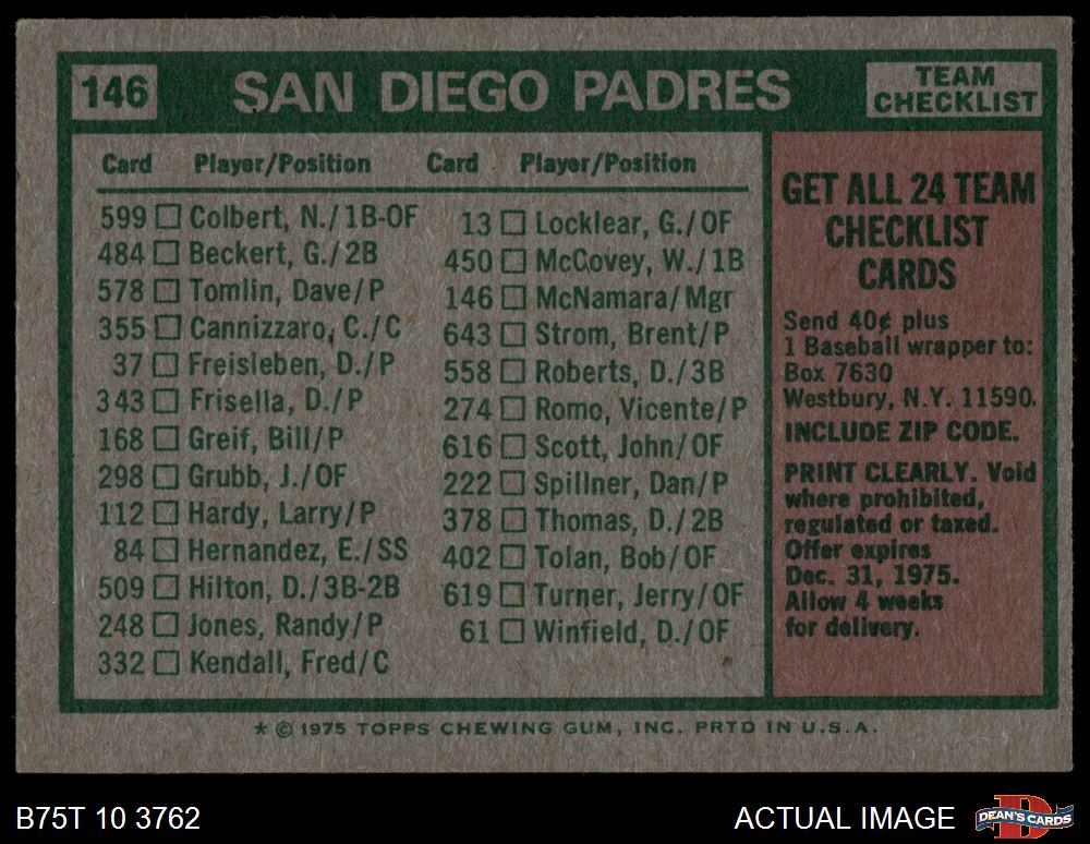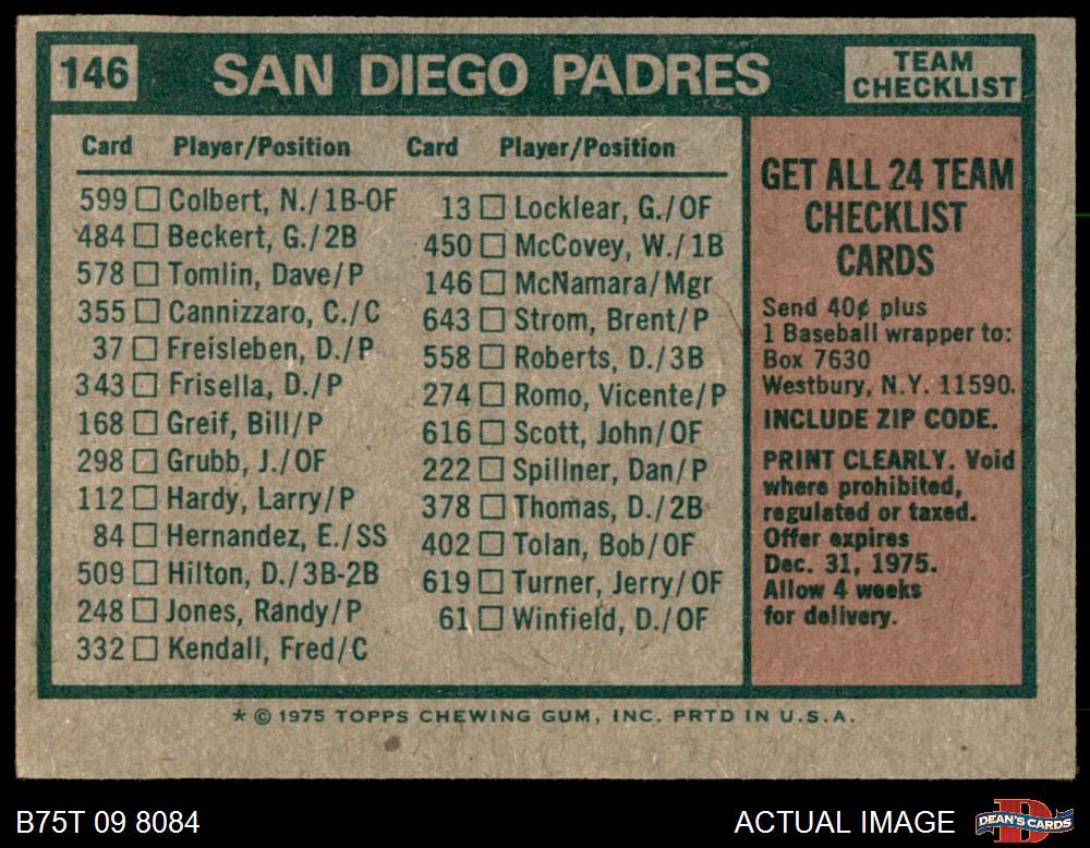 1975 Topps #146 - John McNamara Padres Team Checklist 5 - EX