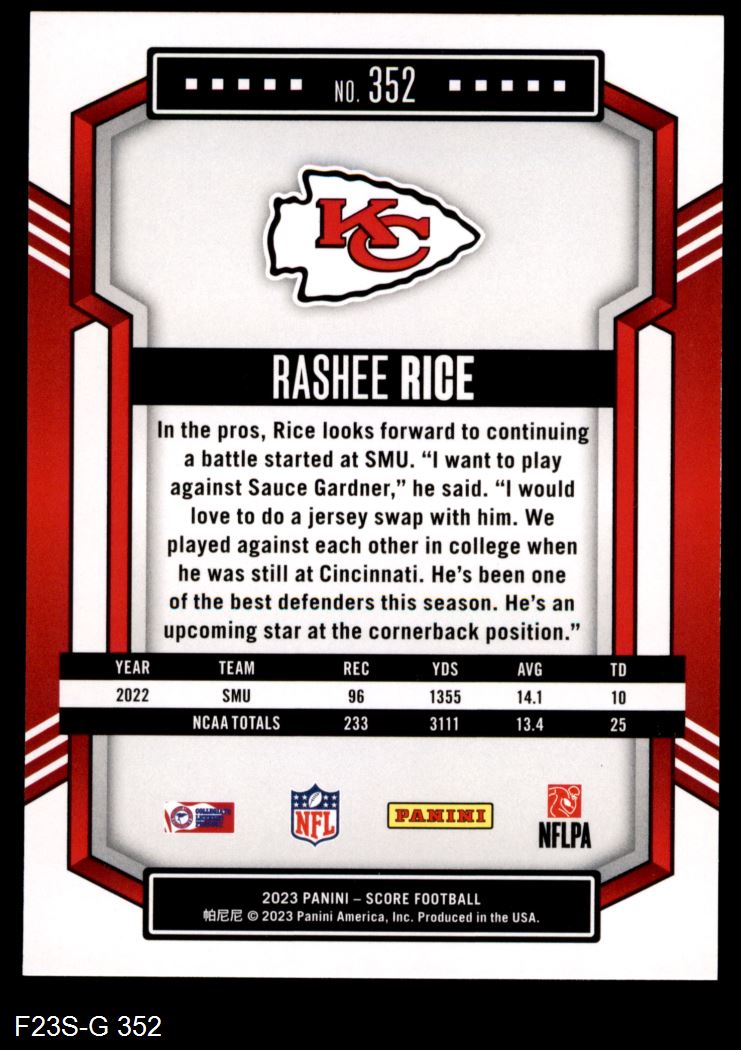 2023 Score #352 Rashee Rice 8 - NM/MT