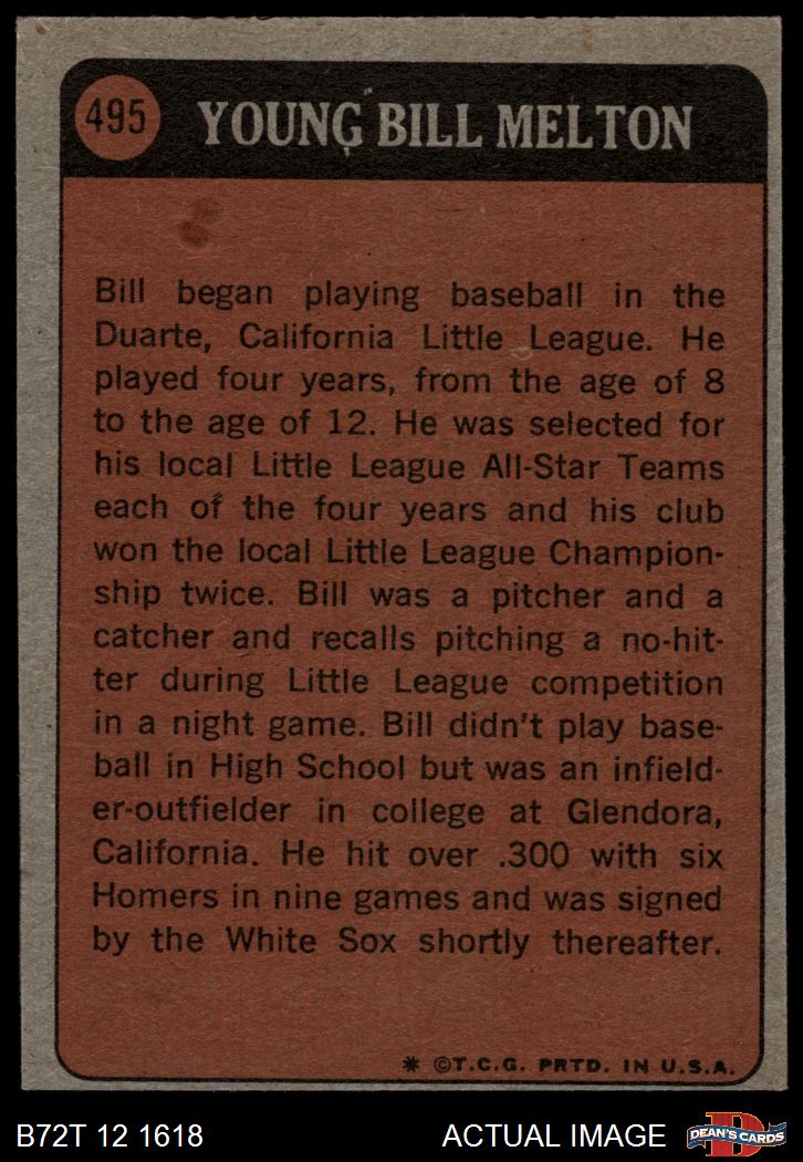 1972 Topps #495 - Bill Melton Boyhood Photo 2 - GOOD
