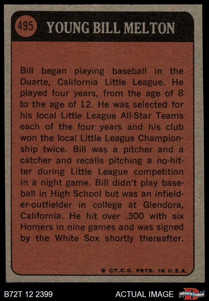 1972 Topps #495 - Bill Melton Boyhood Photo 4 - VG/EX