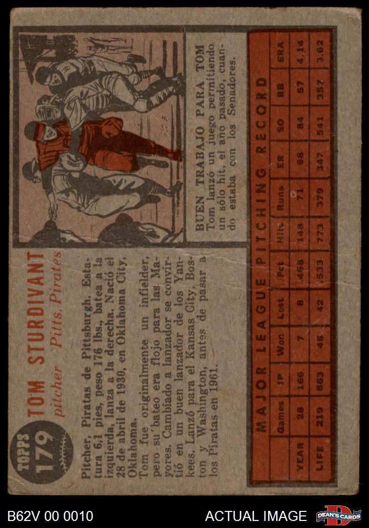 1962 Topps Venezulean #179 Tom Sturdivant 1.5 - FAIR