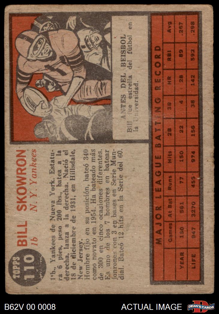 1962 Topps Venezulean #110 Bill Skowron 1.5 - FAIR