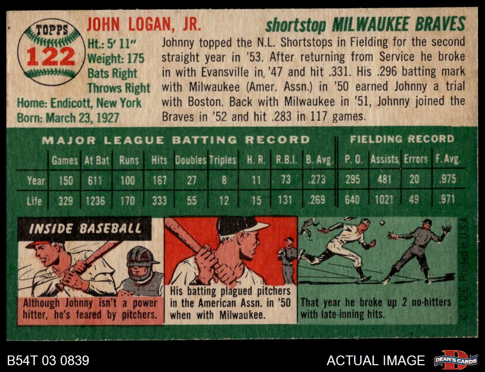 1954 Topps #122 Johnny Logan 6 - EX/MT