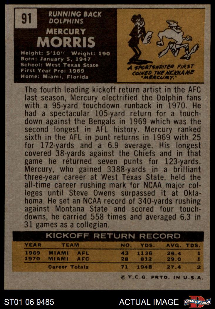 1971 Topps #91 Mercury Morris