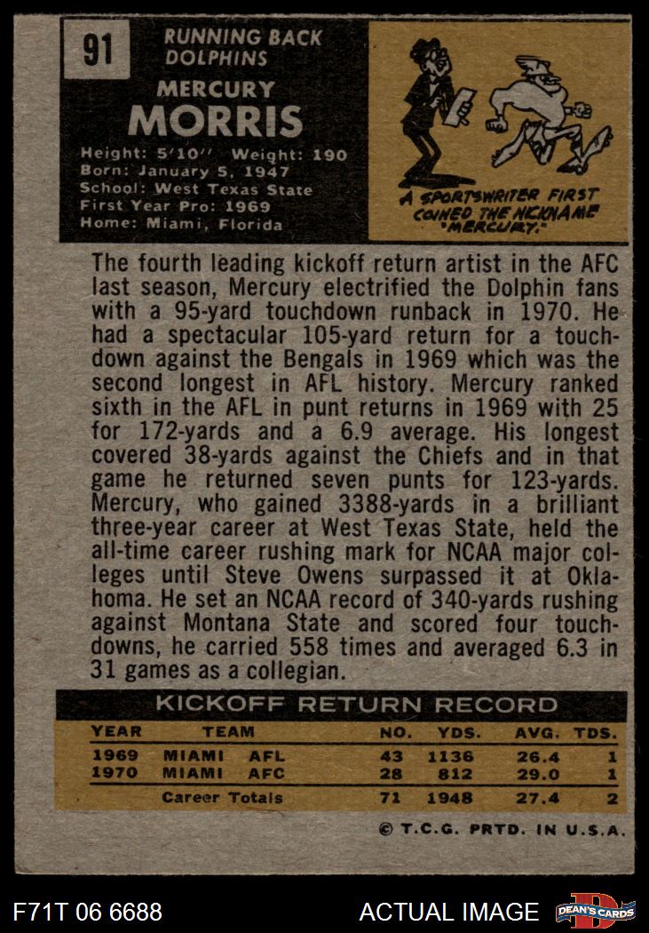 1971 Topps #91 Mercury Morris 3 - VG