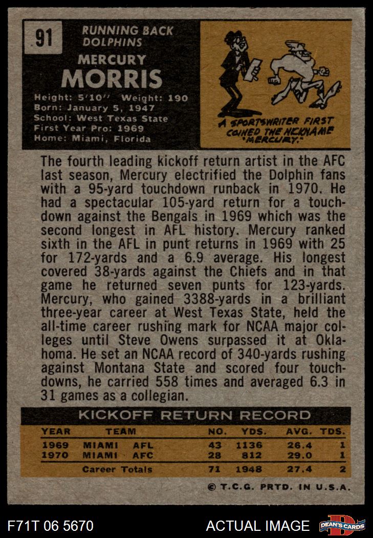 1971 Topps #91 Mercury Morris 6.5 - EX/MT+