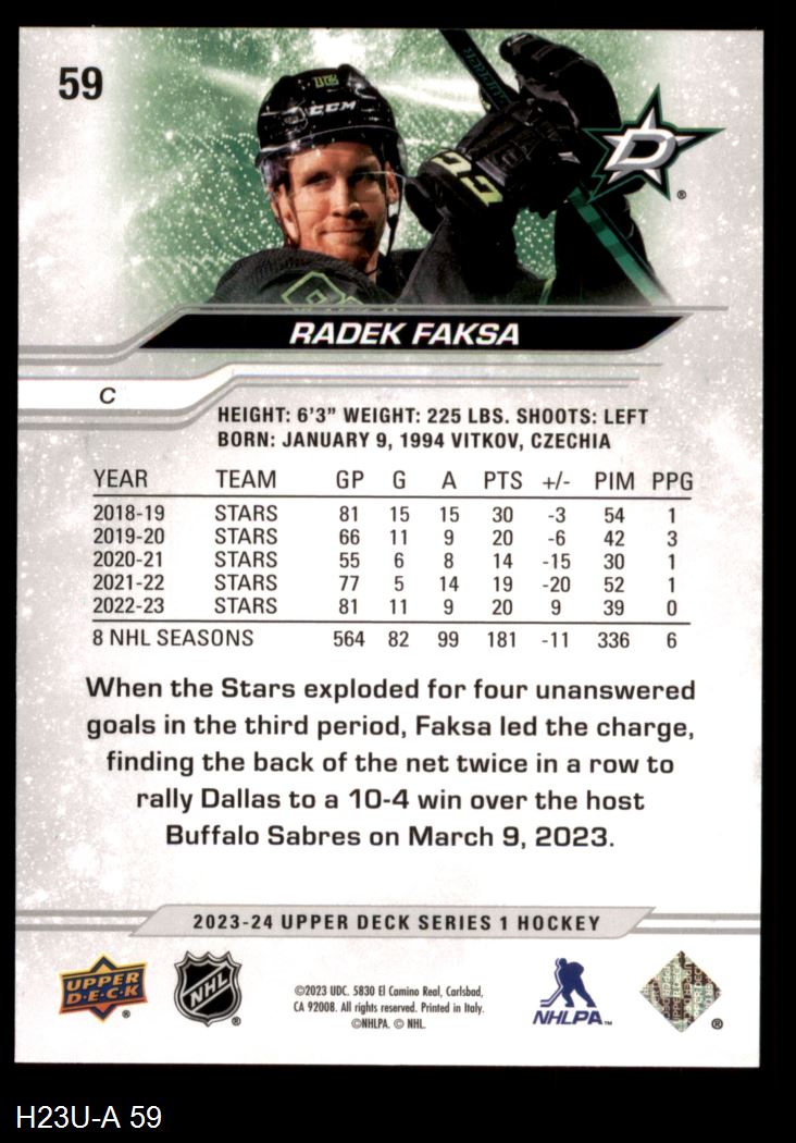 2023 Upper Deck #59 Radek Faksa