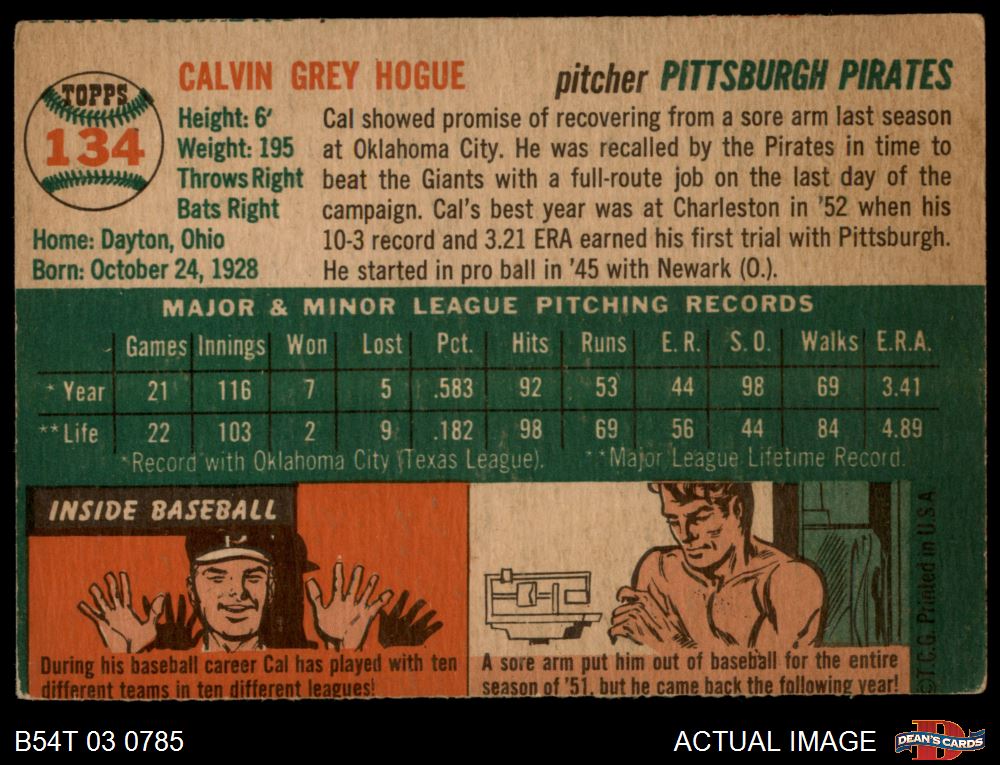 1954 Topps #134 Cal Hogue AUTHENTIC