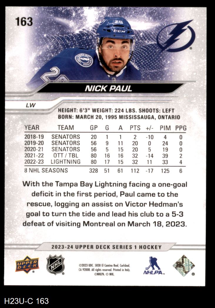 2023-24 Upper Deck Hockey Cards (893 available)2023 Upper Deck Lightning (43 available)