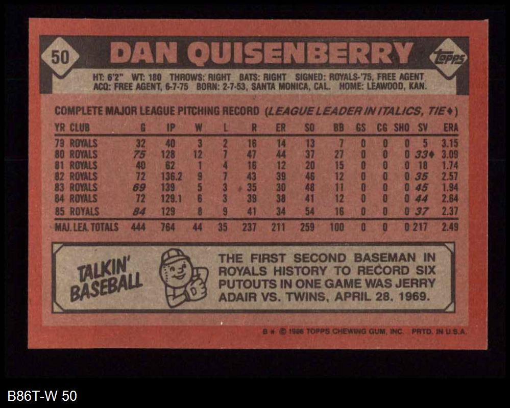 1986 Topps #50 Dan Quisenberry 8 - NM/MT