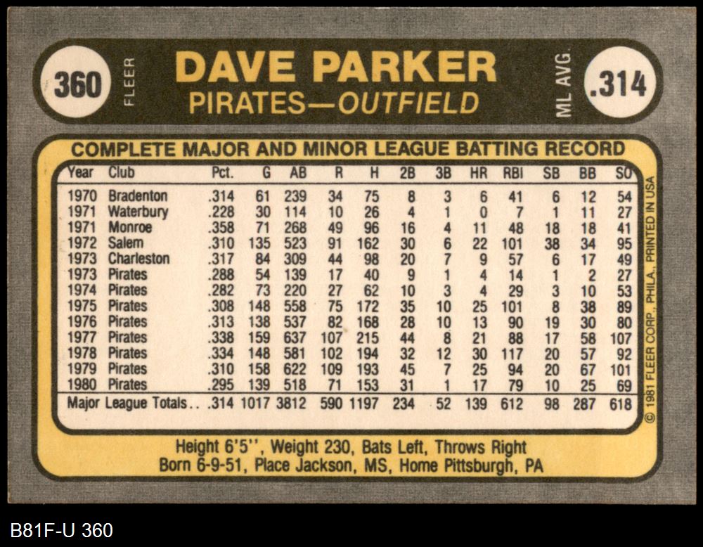 1981 Fleer #360 Dave Parker 8 - NM/MT