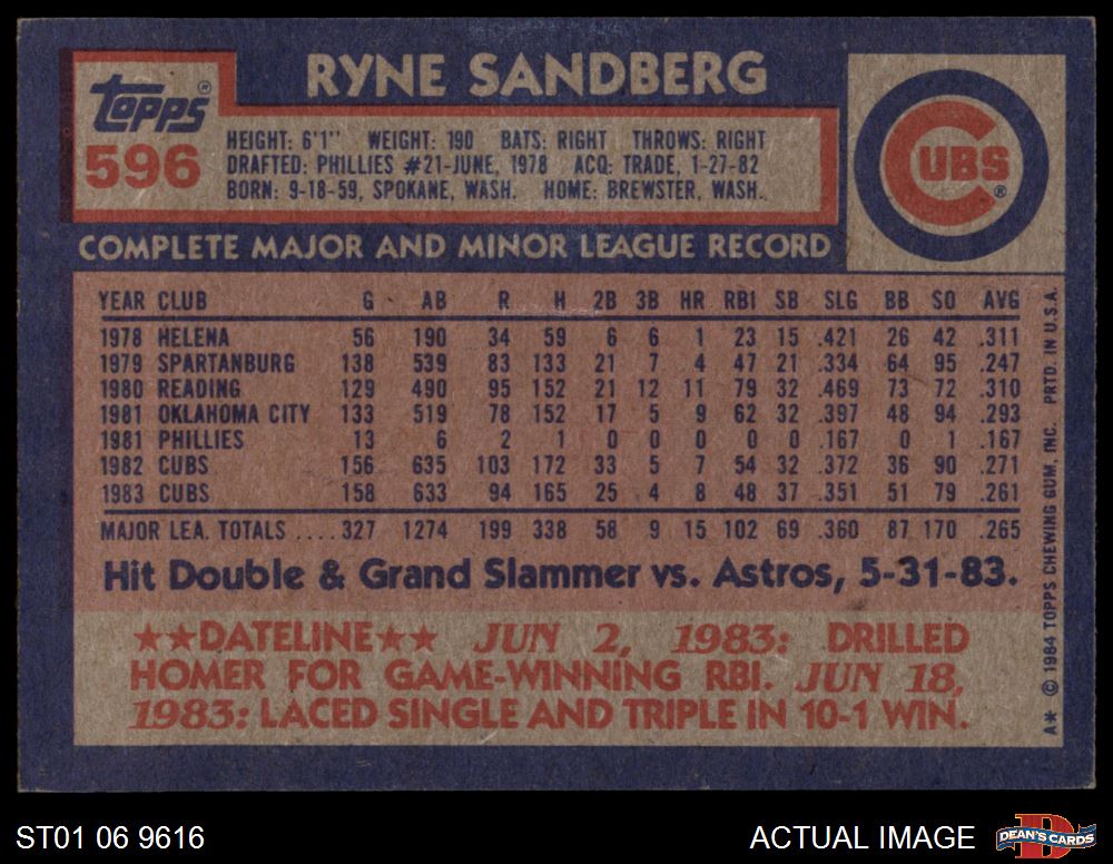 1984 Topps #596 Ryne Sandberg 7 - NM