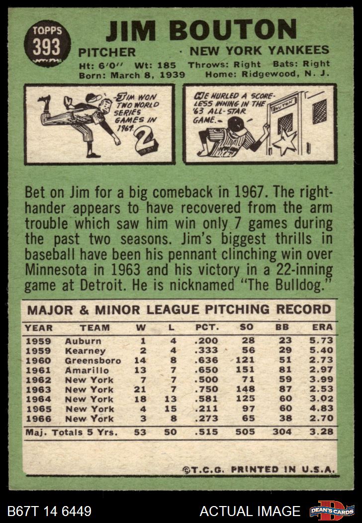 1967 Topps #393 Jim Bouton 6.5 - EX/MT+
