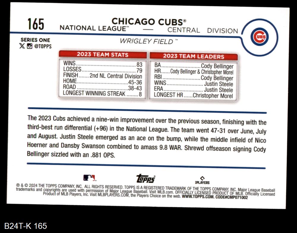 2024 Topps #165 Chicago Cubs Team