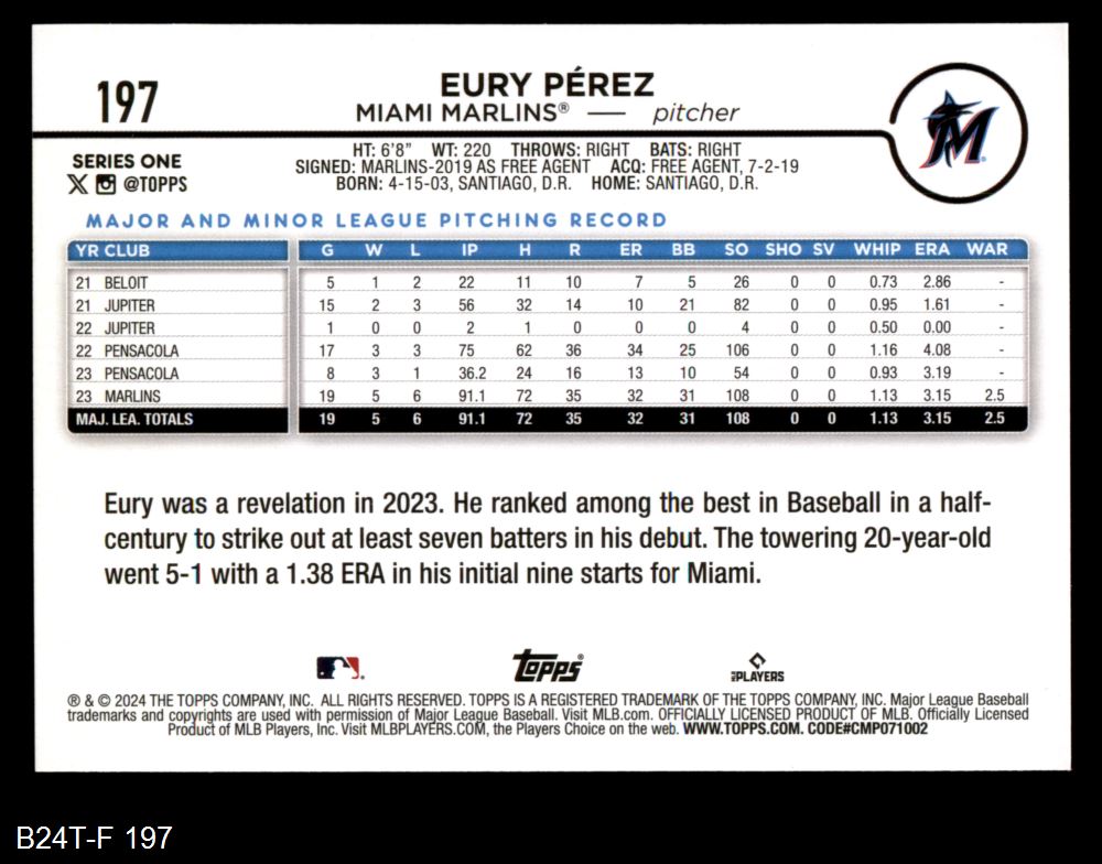 2024 Topps #197 - Eury Perez Future Stars 8 - NM/MT