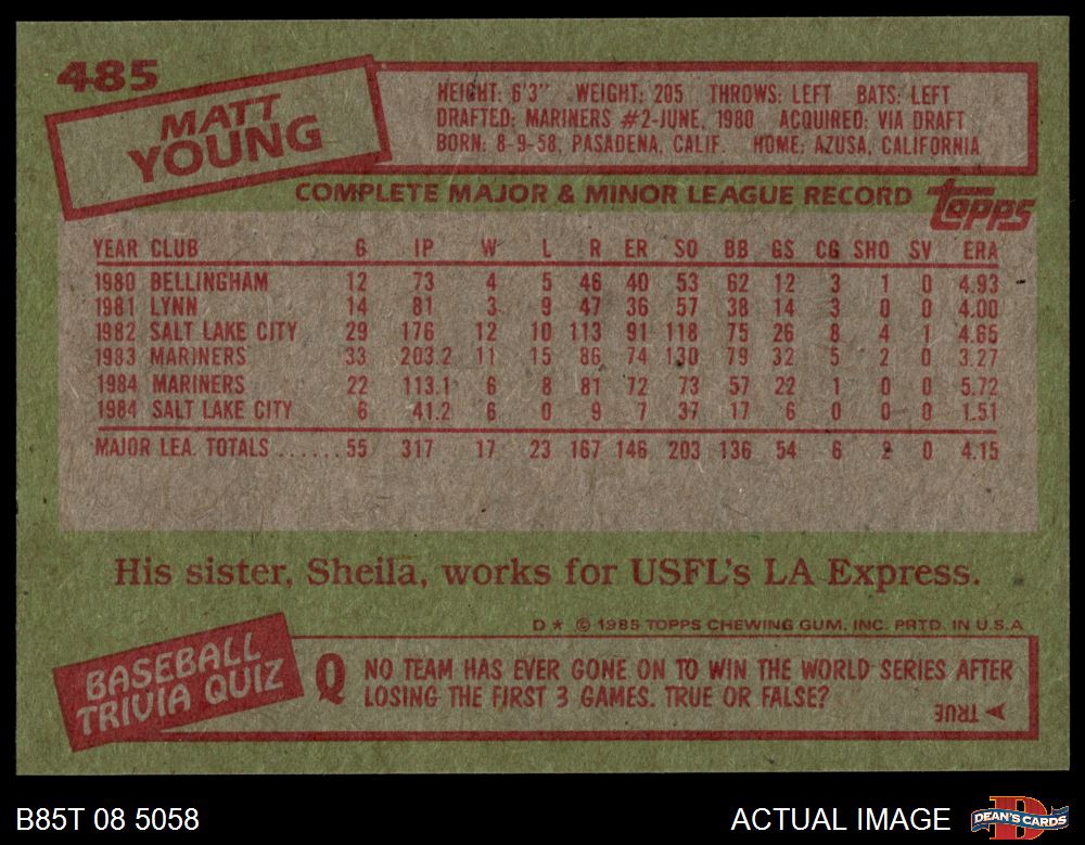 1985 Topps Baseball Cards (11,293 available)1985 Topps Mariners (490 available)