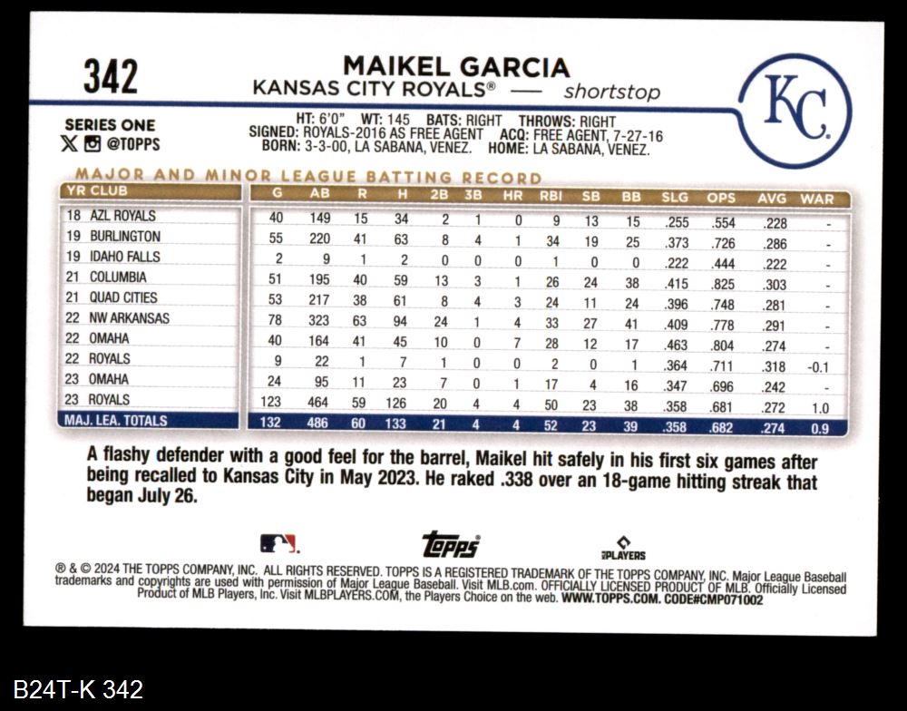 2024 Topps #342 Maikel Garcia