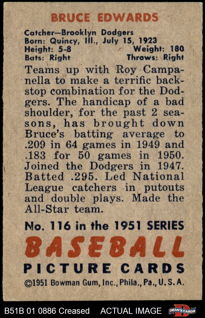 1951 Bowman #116 Bruce Edwards 3.5 - VG+