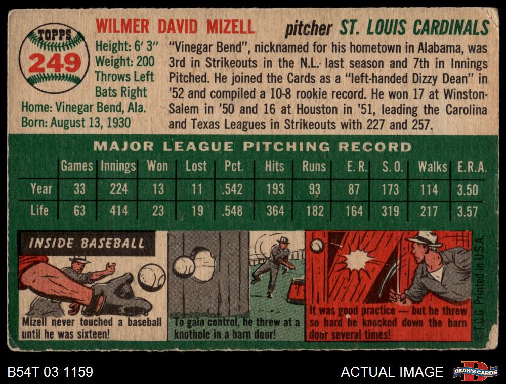 1954 Topps #249 Wilmer Mizell 2 - GOOD
