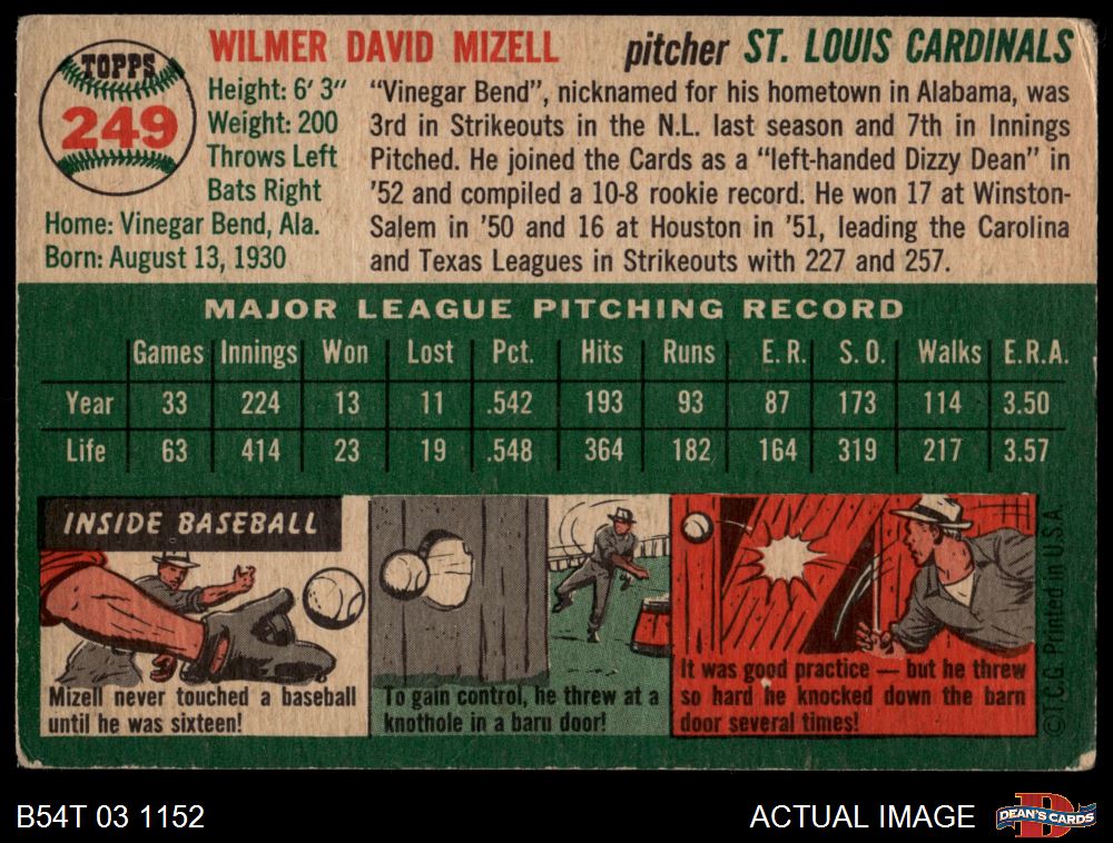 1954 Topps #249 Wilmer Mizell 3 - VG