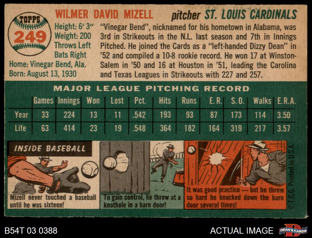 1954 Topps #249 Wilmer Mizell 4.5 - VG/EX+