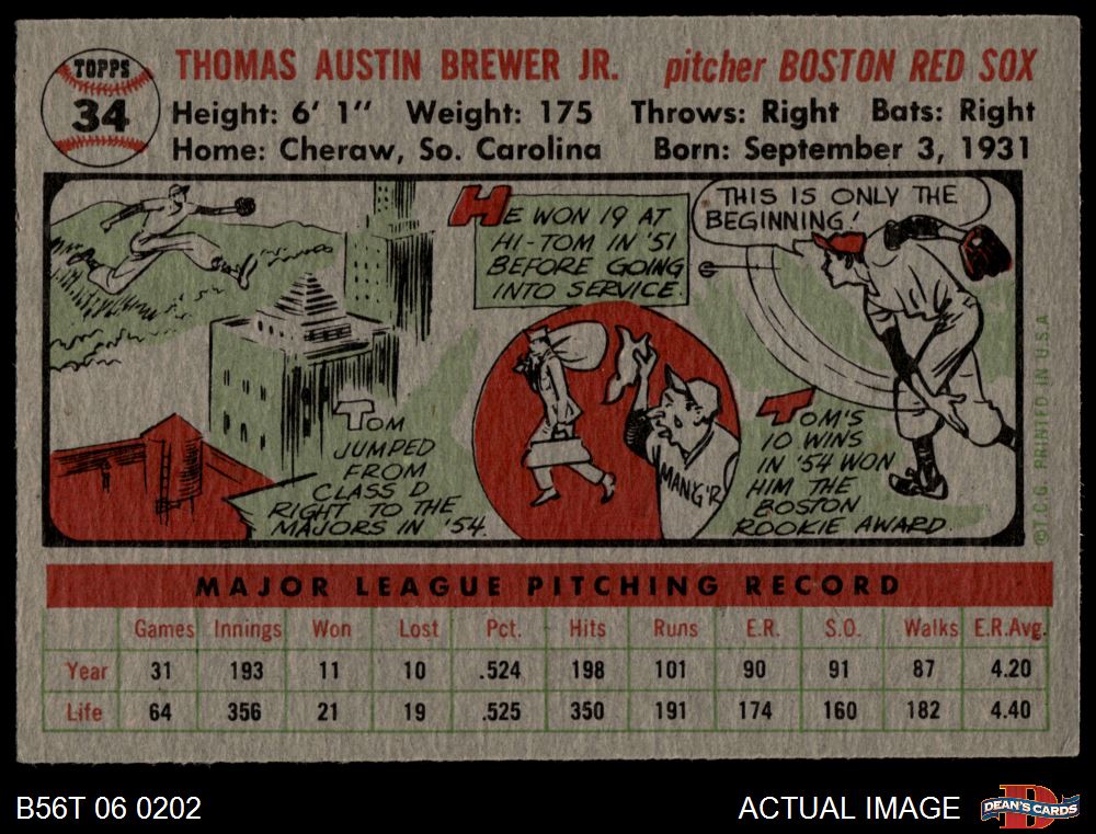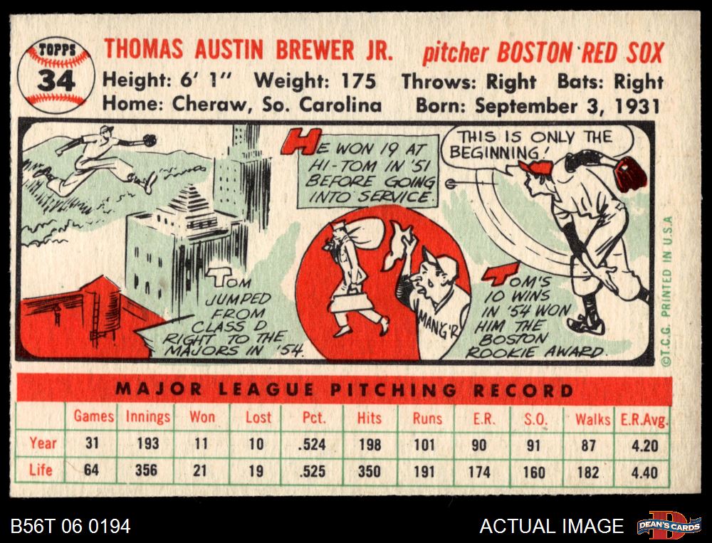 1956 Topps #34 Tom Brewer 4 - VG/EX