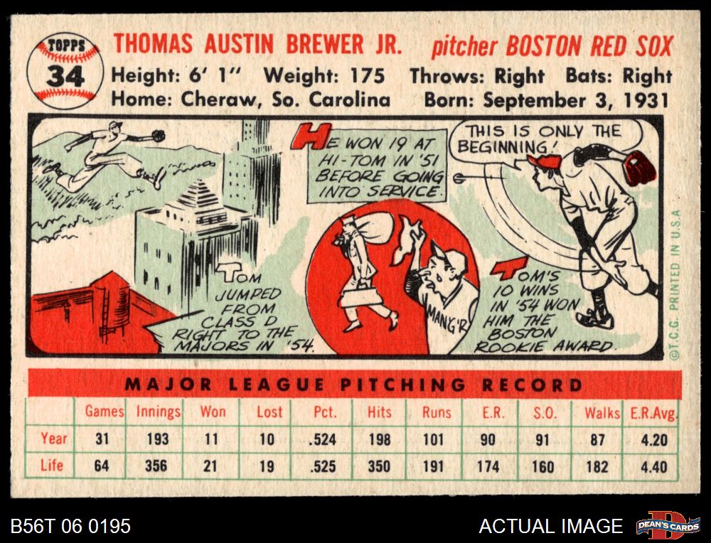 1956 Topps #34 Tom Brewer 7 - NM