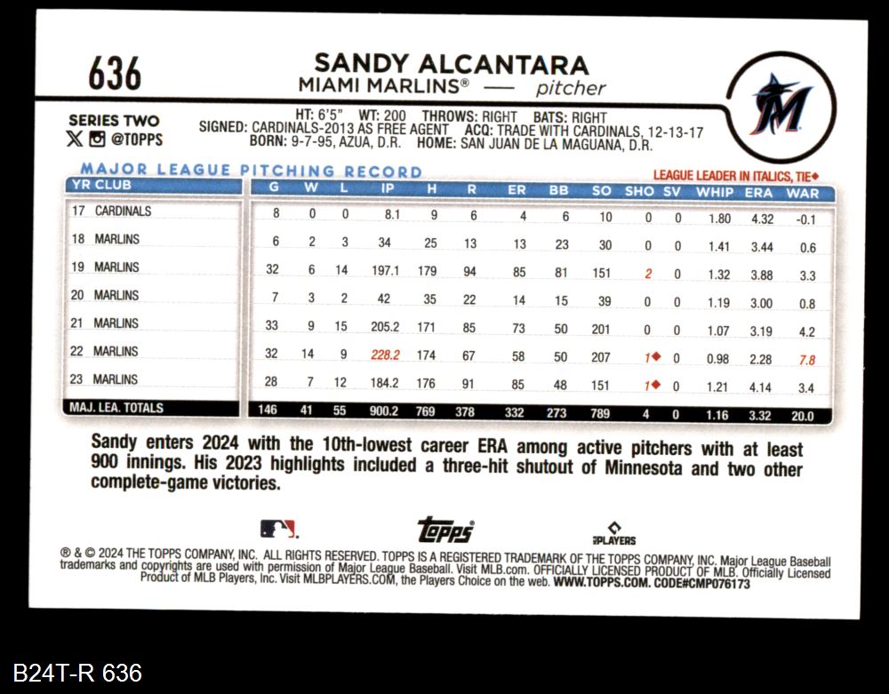 2024 Topps #636 Sandy Alcantara 8 - NM/MT