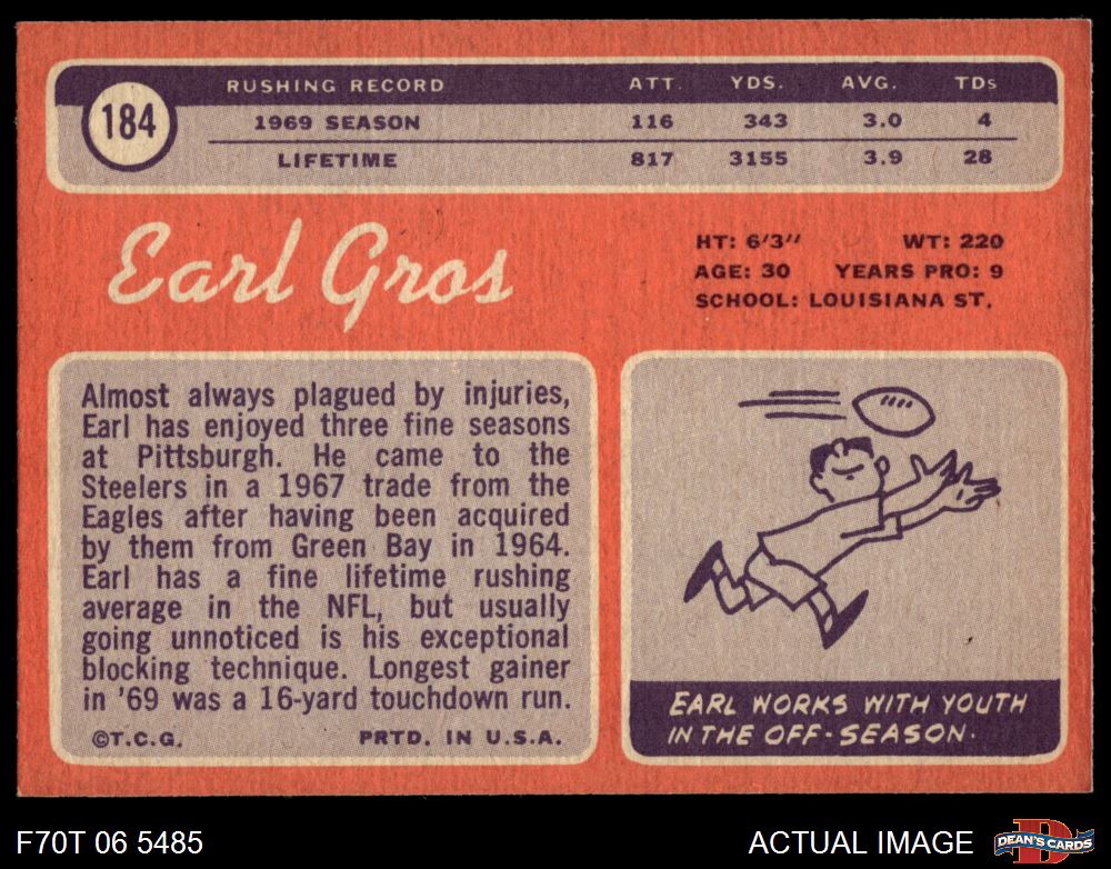 1970 Topps #184 Earl Gros 8 - NM/MT