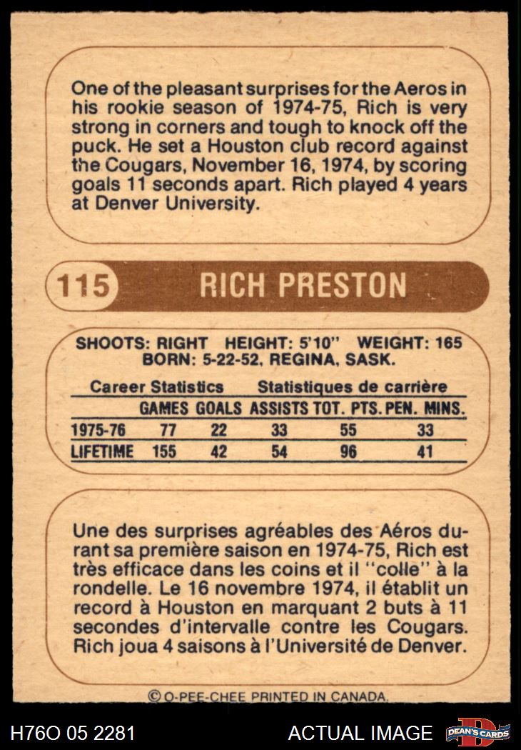 1976 O-Pee-Chee WHA #115 Rich Preston 6 - EX/MT