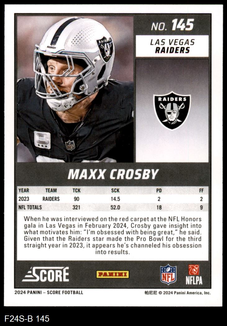 2024 Score #145 Maxx Crosby 8 - NM/MT