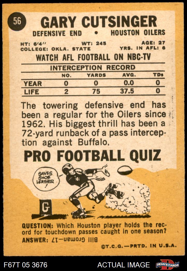 1967 Topps Football (484 available)1967 Topps Oilers (95 available)