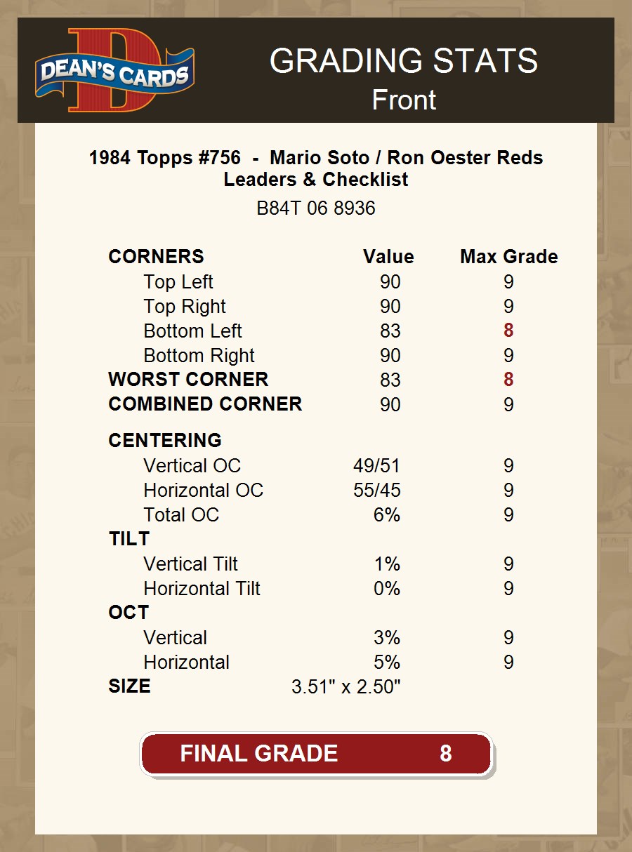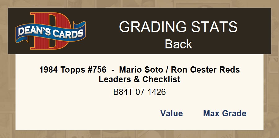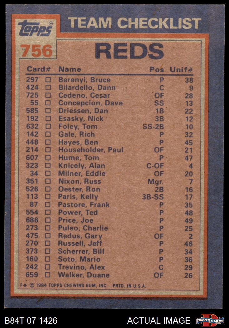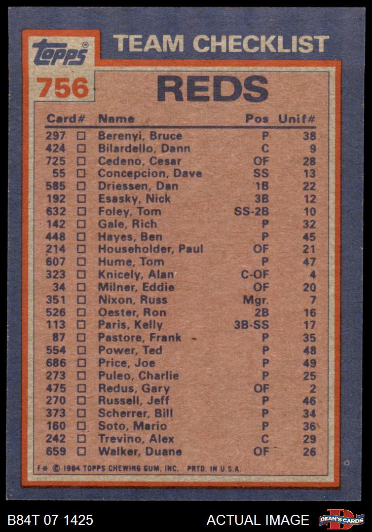 1984 Topps #756 - Mario Soto / Ron Oester Reds Leaders & Checklist 8 - NM/MT