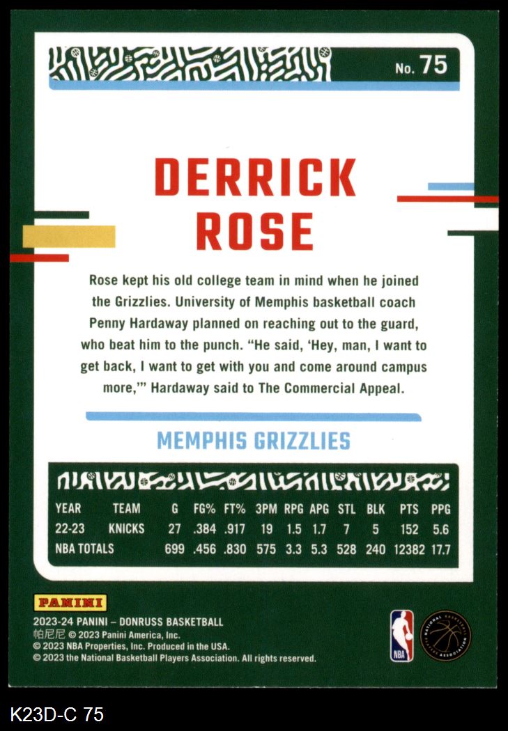 2023 Donruss #75 Derrick Rose 8 - NM/MT
