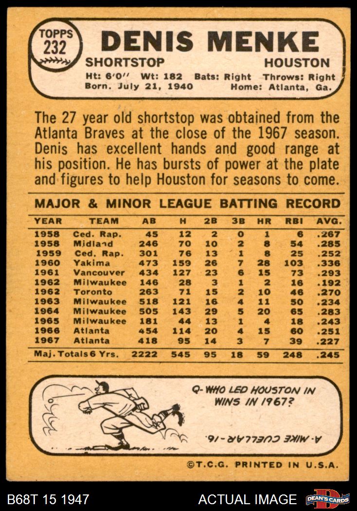 1968 Topps #232 Denis Menke