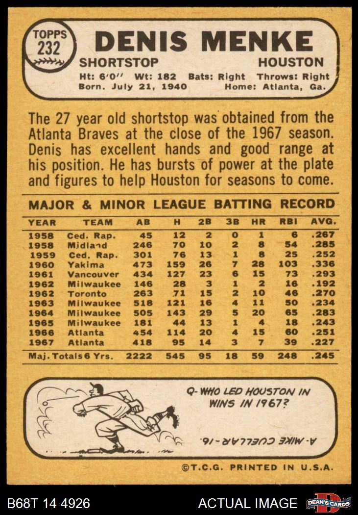 1968 Topps #232 Denis Menke 7 - NM