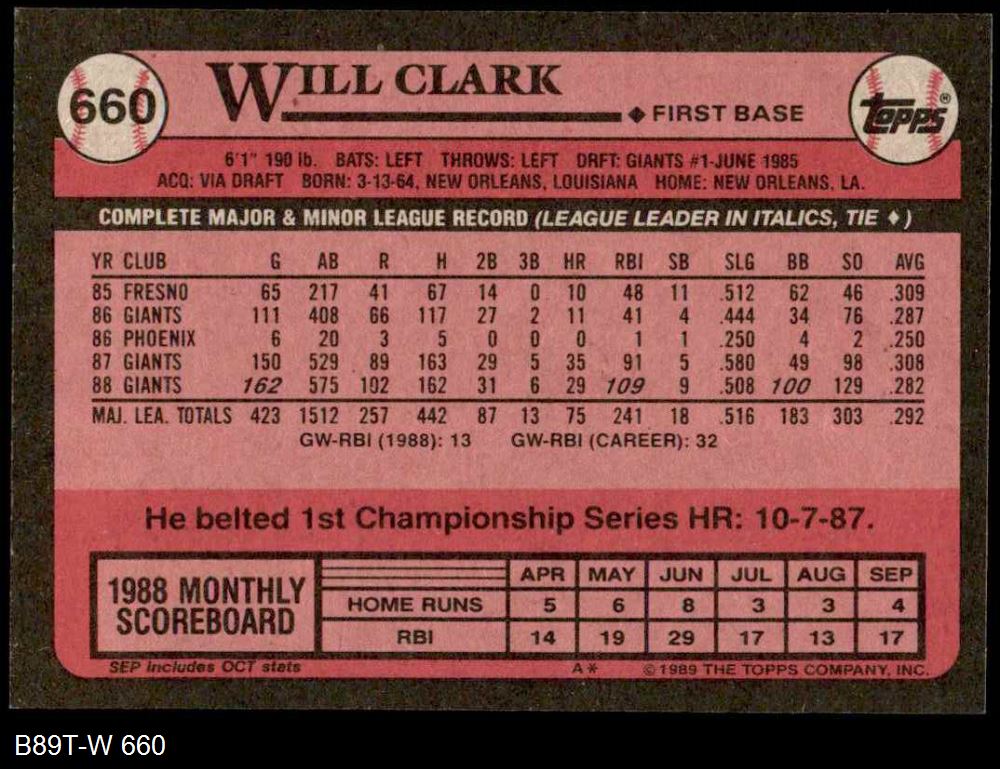 1989 Topps #660 Will Clark