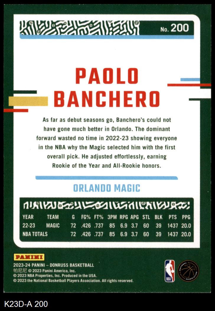 2023 Donruss #200 Paolo Banchero 8 - NM/MT