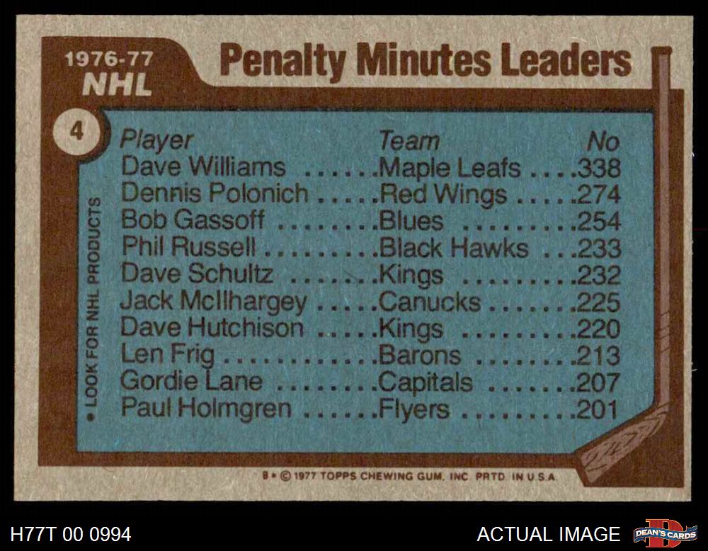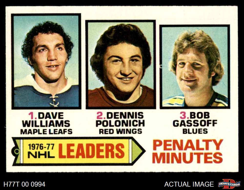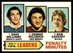 1977 Topps #4 - Dave Williams / Dennis Polonich / Bob Gassoff NHL Penalty Minutes Leaders 5 - EX