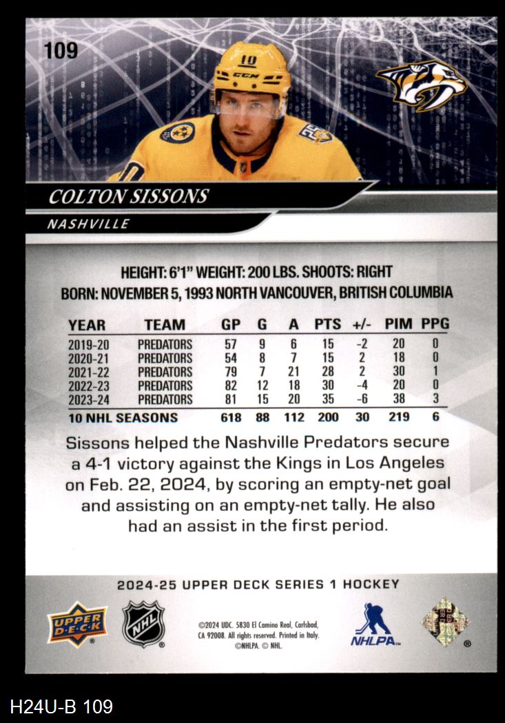 2024 Upper Deck #109 Colton Sissons 8 - NM/MT