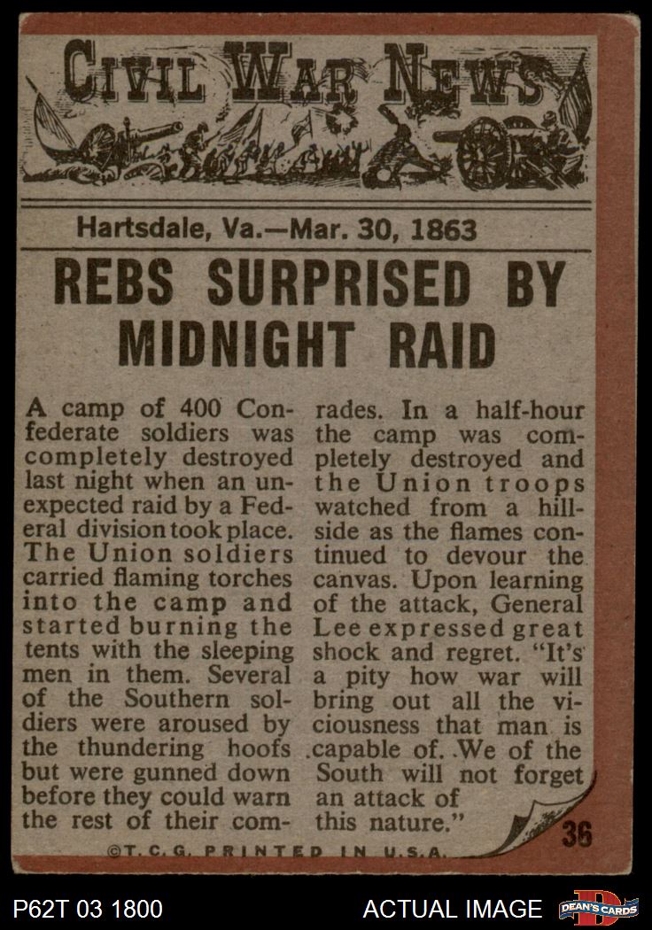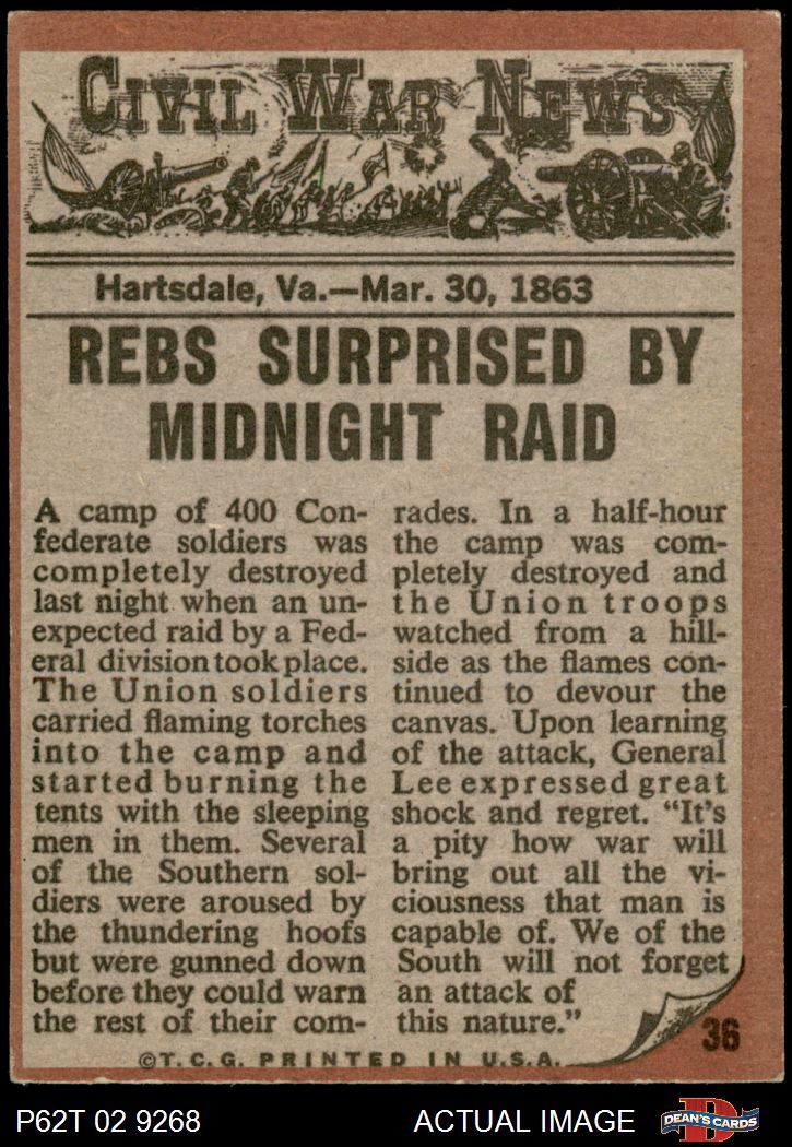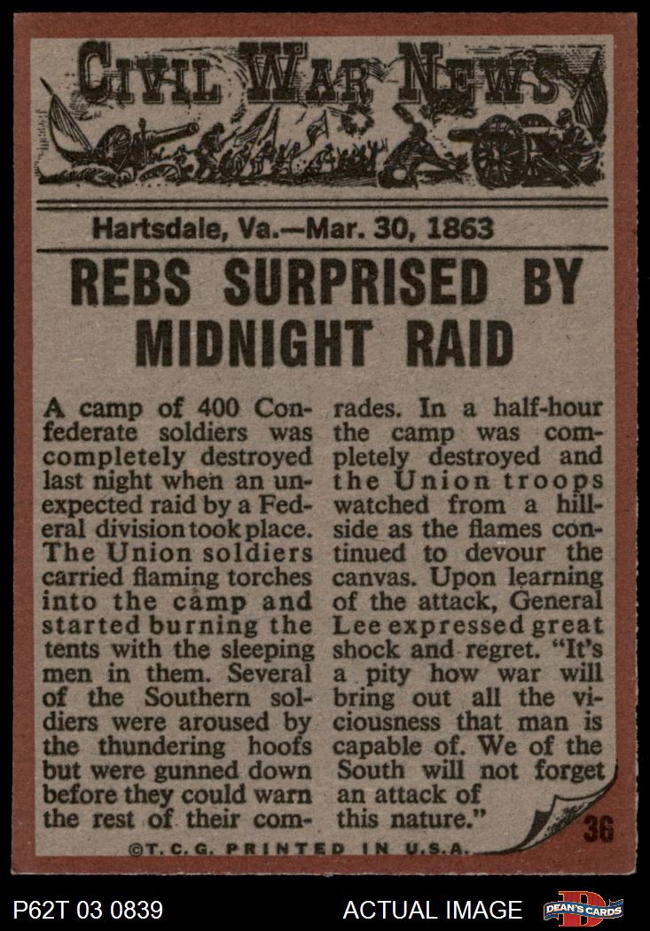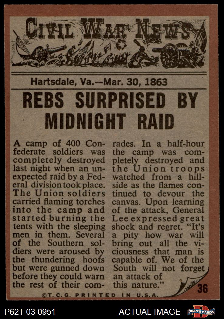 1962 Topps Civil War News #36 Midnight Raid