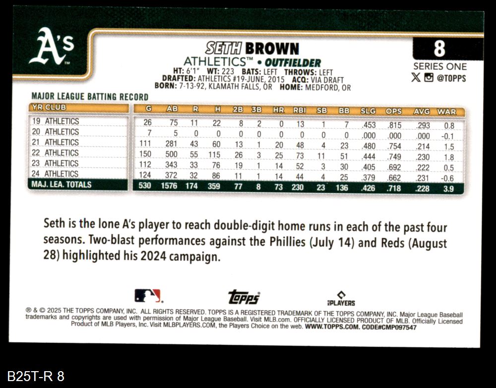 2025 Topps #8 Seth Brown 8 - NM/MT