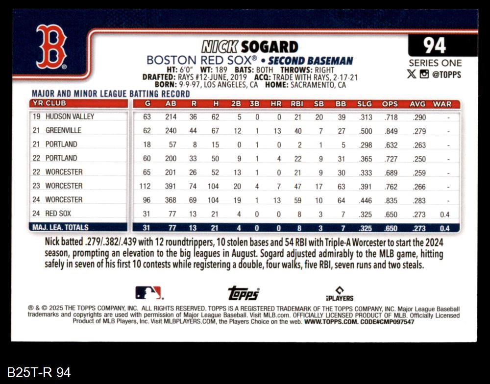 2025 Topps #94 Nick Sogard 8 - NM/MT