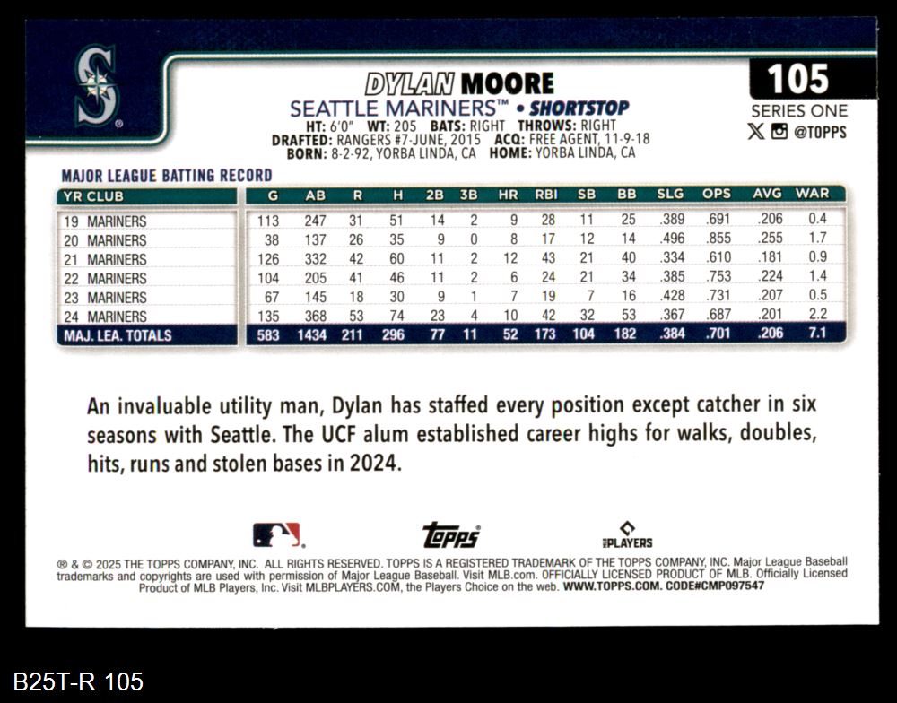 2025 Topps #105 Dylan Moore 8 - NM/MT
