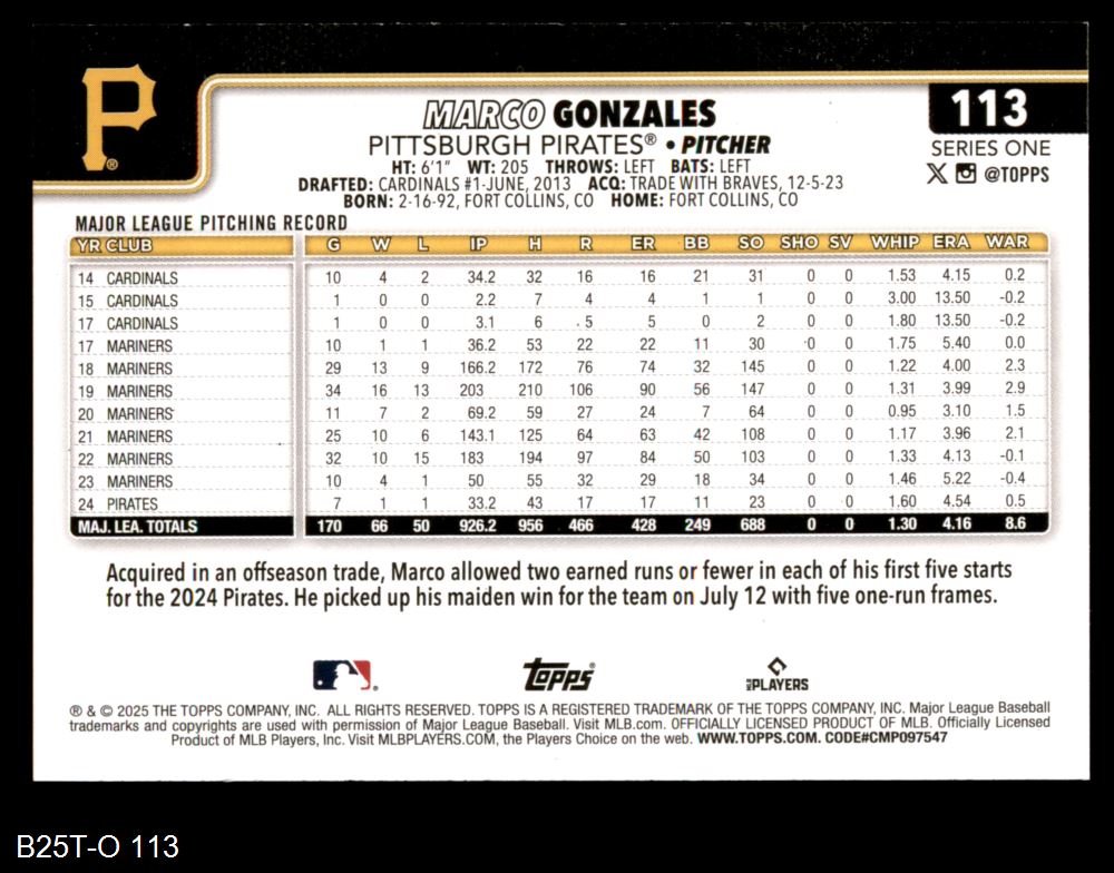 2025 Topps #113 Marco Gonzales 8 - NM/MT