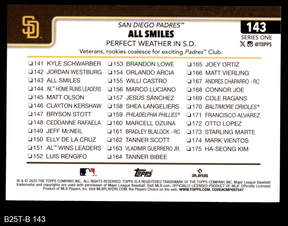 2025 Topps #143 - Manny Machado Checklist 8 - NM/MT