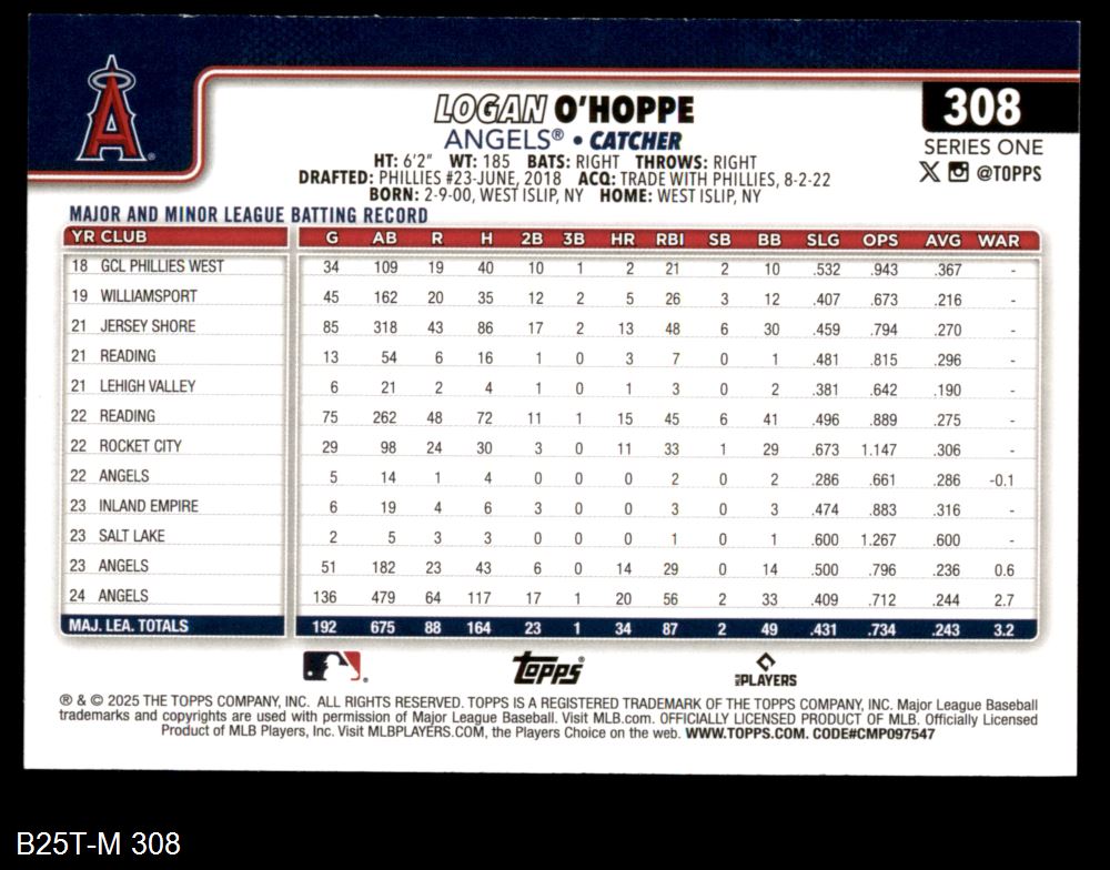 2025 Topps #308 Logan O'Hoppe