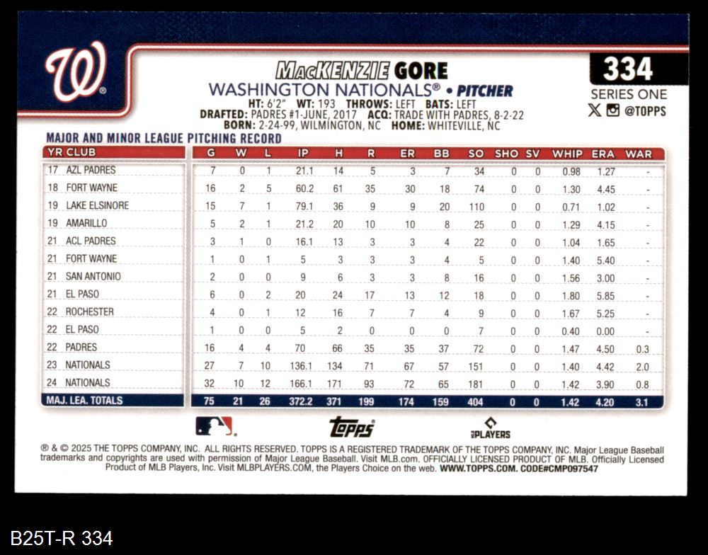 2025 Topps #334 MacKenzie Gore 8 - NM/MT